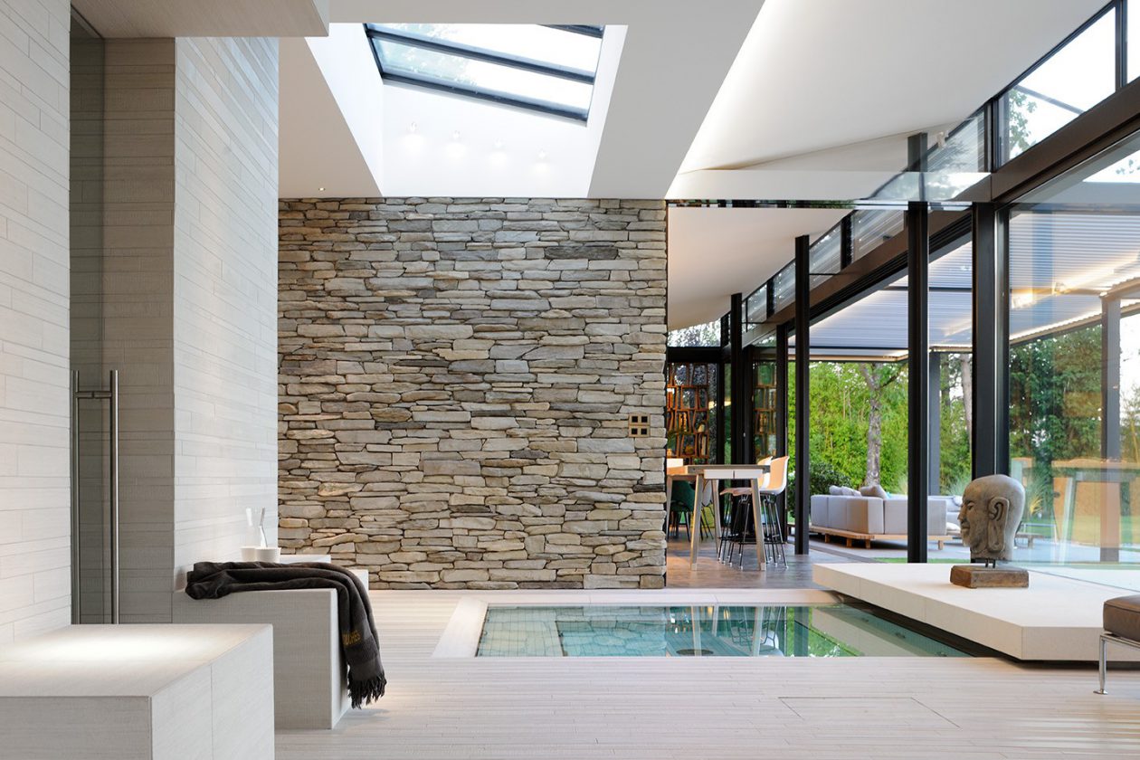 Un projet résidentiel particulièrement original à Lyon caractérisé par des sols en grès cérame effet pierre qui enveloppent avec style et naturel les nombreuses surfaces extérieures. Un design sobre, où des lignes nettes et épurées créent un style élégant et contemporain.